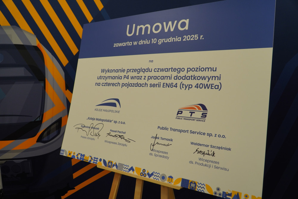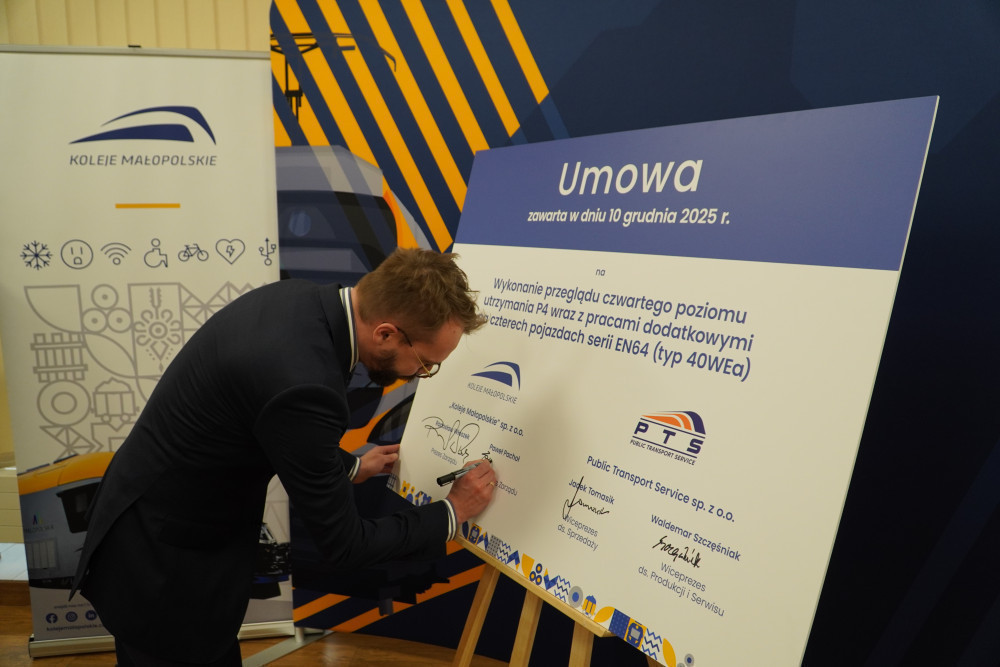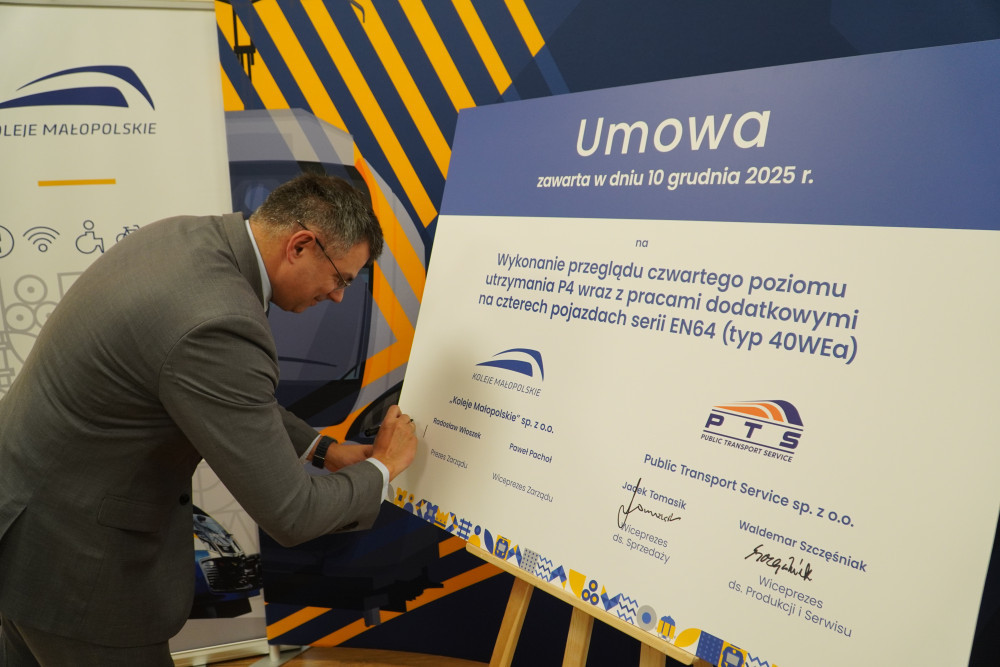 Spółka „Koleje Małopolskie” sp. z o.o., wraz z podpisaną dziś umową z Public Transport Service sp. z o.o., rozpoczyna etap przeglądów wyższego rzędu P4, jednocześnie trwa postępowanie na przeglądy poziomu P5.