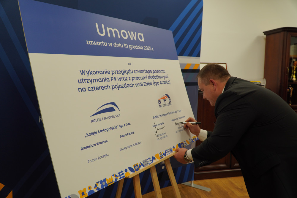 Spółka „Koleje Małopolskie” sp. z o.o., wraz z podpisaną dziś umową z Public Transport Service sp. z o.o., rozpoczyna etap przeglądów wyższego rzędu P4, jednocześnie trwa postępowanie na przeglądy poziomu P5.