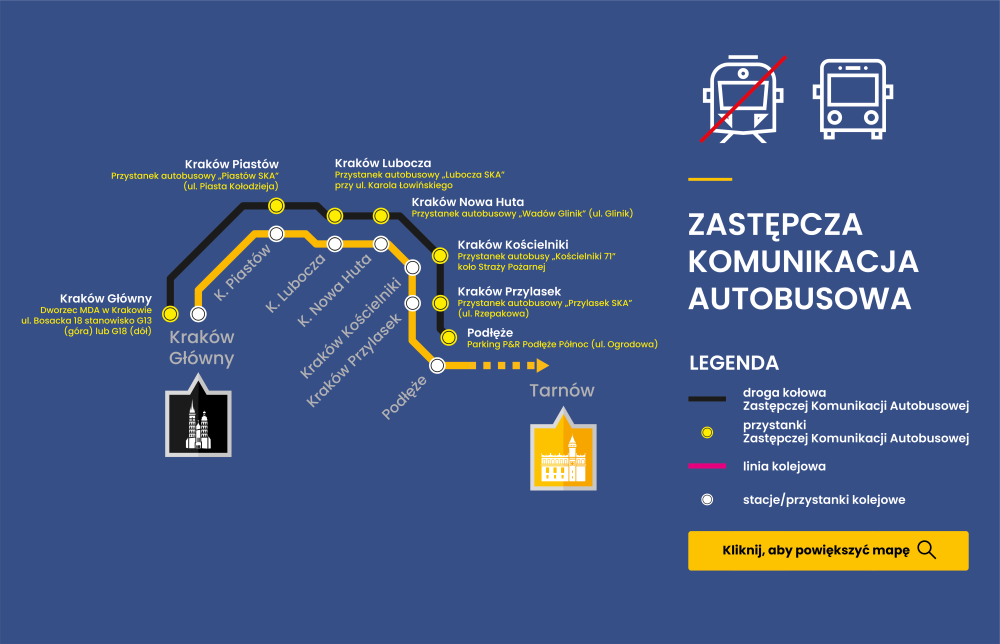 Drodzy Podróżni, poniżej znajdziecie najważniejsze informacje dotyczące funkcjonowania Zastępczej Komunikacji Autobusowej. Będzie ona realizowana w następujących okresach: